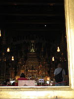 The temp is hot, hot, hot and tiring.....took the water taxi up and down the river stopping at various locations to see if I can find an Internet cafe...no luck. I am using the Mercy Center computer to post my BLOG. Had dinner at a restaurant across from Wat Arun ---sum tam and chicken satay + beer. Took a tuk-tuk (see photo) back to the hotel...wash clothes and went to bed.
